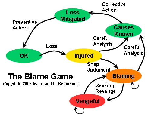 According to this web-site that discusses blame, we blame others to dispose of problems and protect our sense of self-worth when things go bad. “Self-justification—describing events in a way that preserves our pride and reduces cognitive dissonance—causes us to distort the evidence and shift blame to others.”
